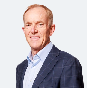 Stephen Roche wearing a dark blazer and light blue shirt poses against a plain white background.